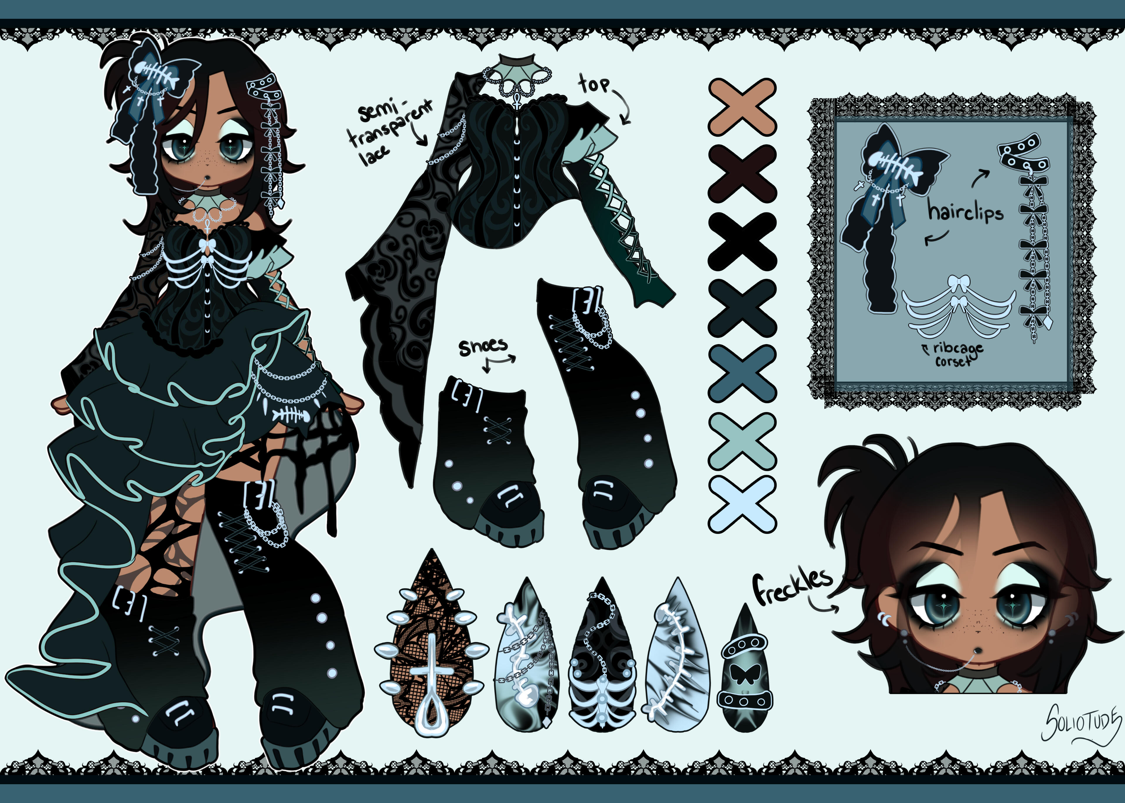 - FOR CHARACTER AND OUTFIT DESIGNS: I retain all of the rights to any and/or all aspects of unused concept sketches.